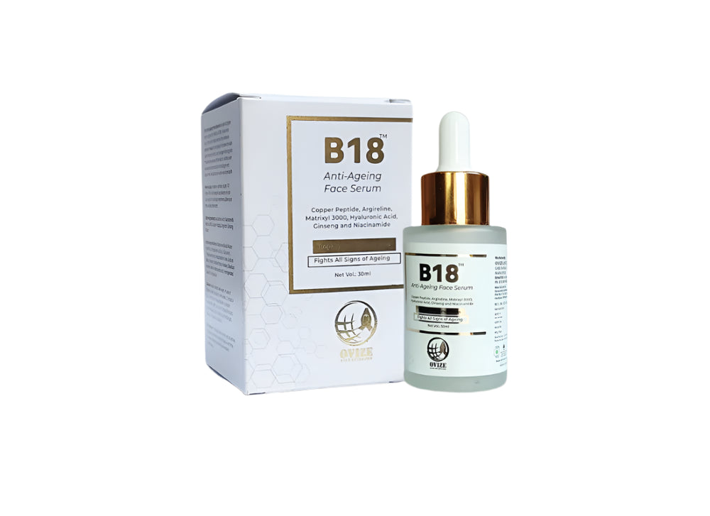 Unleash your inner glow with B18. This potent serum combines cutting-edge ingredients like GHK-Cu, Acetylhexapeptide 8, Matrixyl 3000 and Hyaluronic Acid to fight wrinkles, boost elasticity, and leave skin feeling plump and hydrated. Ginseng and Niacinamide work together to even skin tone and combat signs of aging, revealing a more youthful, radiant you.