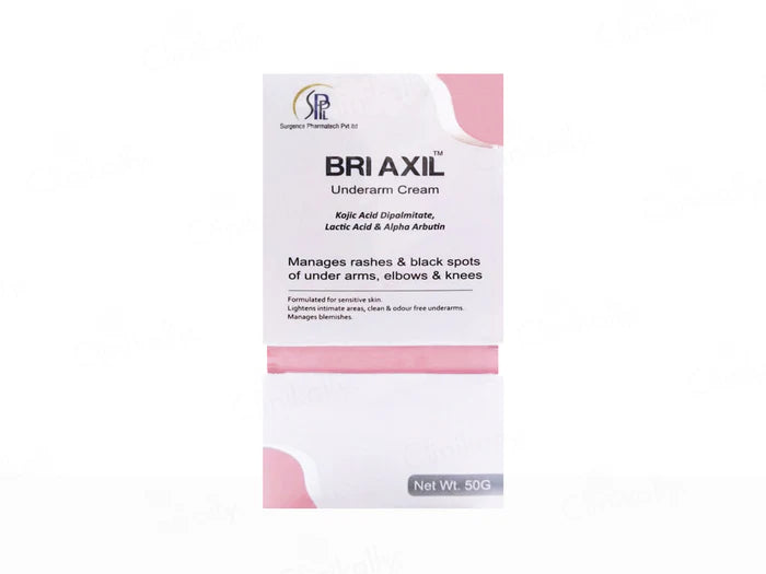 Bri Axil Underarm Cream For Sensitive Skin is a specialized skincare solution designed to gently lighten and care for delicate underarm areas. Formulated with Kojic Acid Dipalmitate, Lactic Acid, and Alpha Arbutin, it effectively manages dark spots, rashes, and blemishes while being gentle enough for sensitive skin. Enriched with Shea Butter, Aloe Vera Gel, Vitamin E (Tocopheryl Acetate), and Liquorice Extract, this cream soothes irritation, provides hydration, and promotes even skin tone. The non-greasy formula leaves underarms clean, odor-free, and visibly brighter with regular use.
