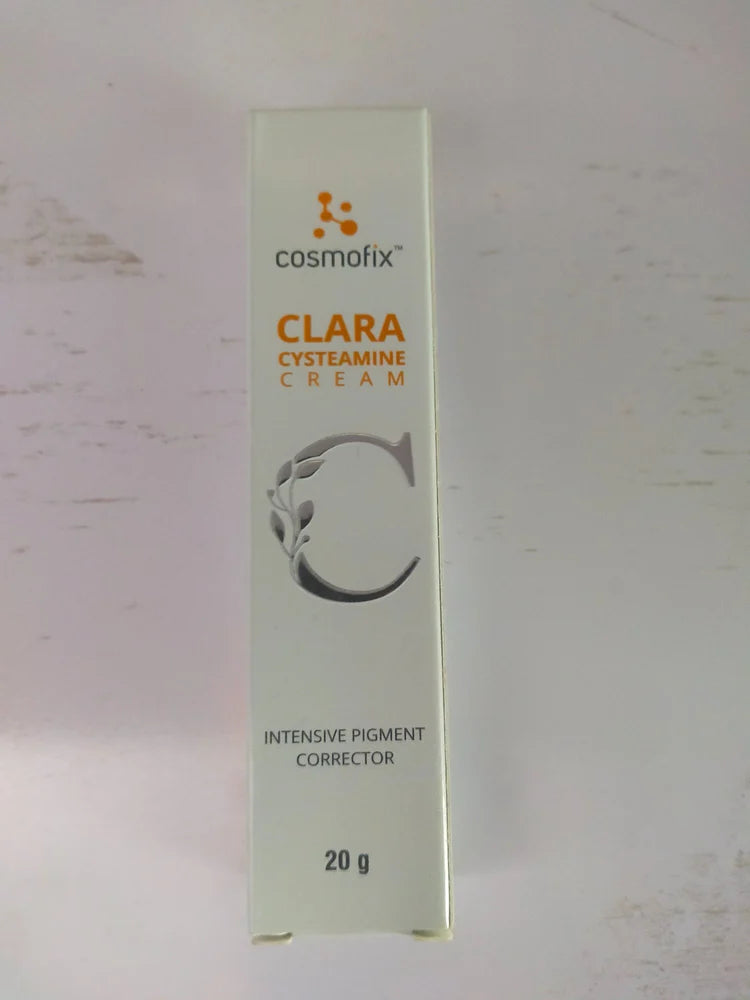 cosmofix clara cysteamine contains cysteamine hydrochloride. It offers hope and is considered a safer alternative to the previously established gold standard for hyperpigmentation treatment- Hydroquinone. Extensive studies have demonstrated its high effectiveness. Cysteamine, naturally occurring in our skin cells and breast milk, plays a role in regulating melanin production. By targeting pigmented brown and dark spots, it promotes an even and lighter skin complexion.
