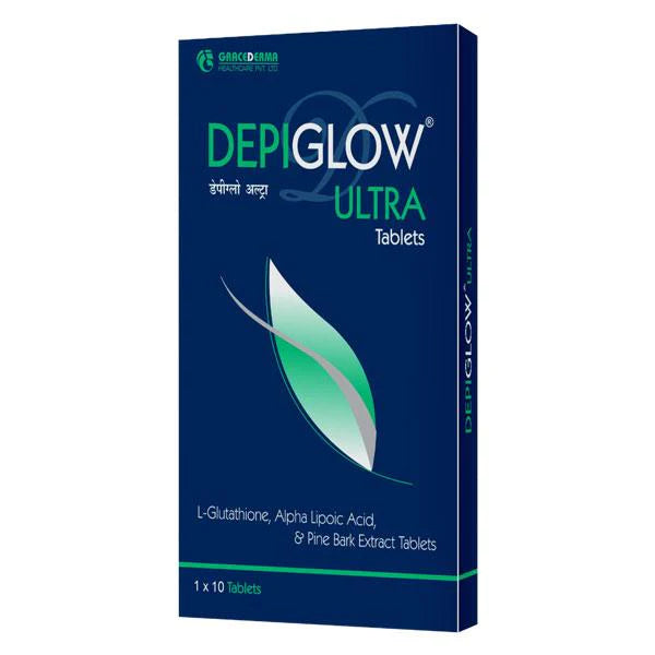 depiglow Ultra tablet from gracederma healthcare. depiglow Ultra tablet contains glutathione as an active ingredient. depiglow Ultra tablet is an excellent tablet for skin whitening, anti-aging purposes. it rejuvenates the skin and skin removes dead cells from the upper layer of the skin and makes the skin look brighter, younger and refresh