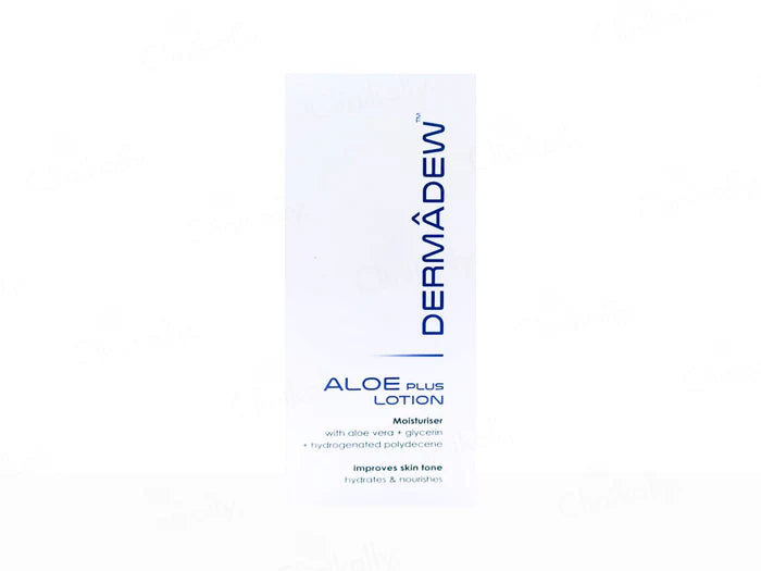 Dermadew Aloe Plus Moisturiser Lotion is a soothing and hydrating skincare solution designed to nourish and protect the skin. Formulated with Aloe Vera Gel and Glycerin, it provides deep moisturization and helps calm irritated skin. The lotion features a moisturizing base containing Dimethicone and Hydrogenated Polydecene, which create a protective barrier to lock in moisture and keep skin soft and supple. Enriched with additional emollients like Octyl Palmitate, Cetyl Alcohol, and Olivate, it ensures long-lasting hydration while maintaining skin elasticity. Ideal for all skin types, especially dry and sensitive skin, this lotion soothes, moisturizes, and leaves skin feeling refreshed and revitalized.