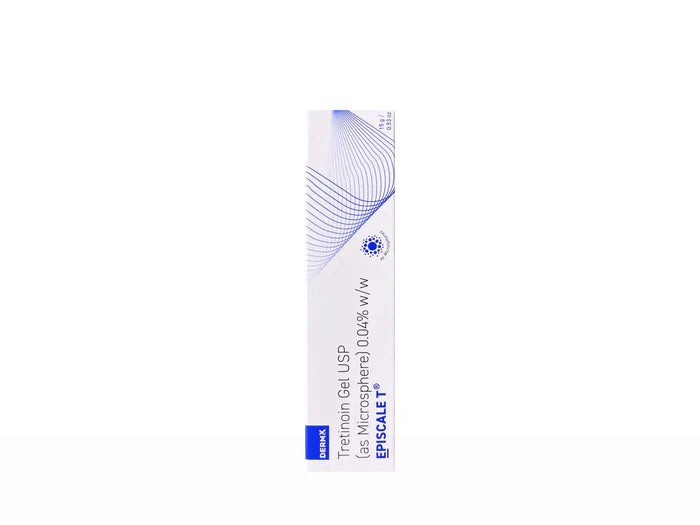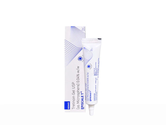 Episcale T Gel is a topical treatment containing Tretinoin, a form of Vitamin A that is highly effective in treating acne, improving skin texture, and reducing signs of aging. Tretinoin accelerates cell turnover, unclogs pores, and stimulates collagen production, which helps in reducing fine lines, wrinkles, and dark spots. It is commonly used to treat acne by preventing new breakouts, fading hyperpigmentation, and promoting smoother, more even-toned skin.
