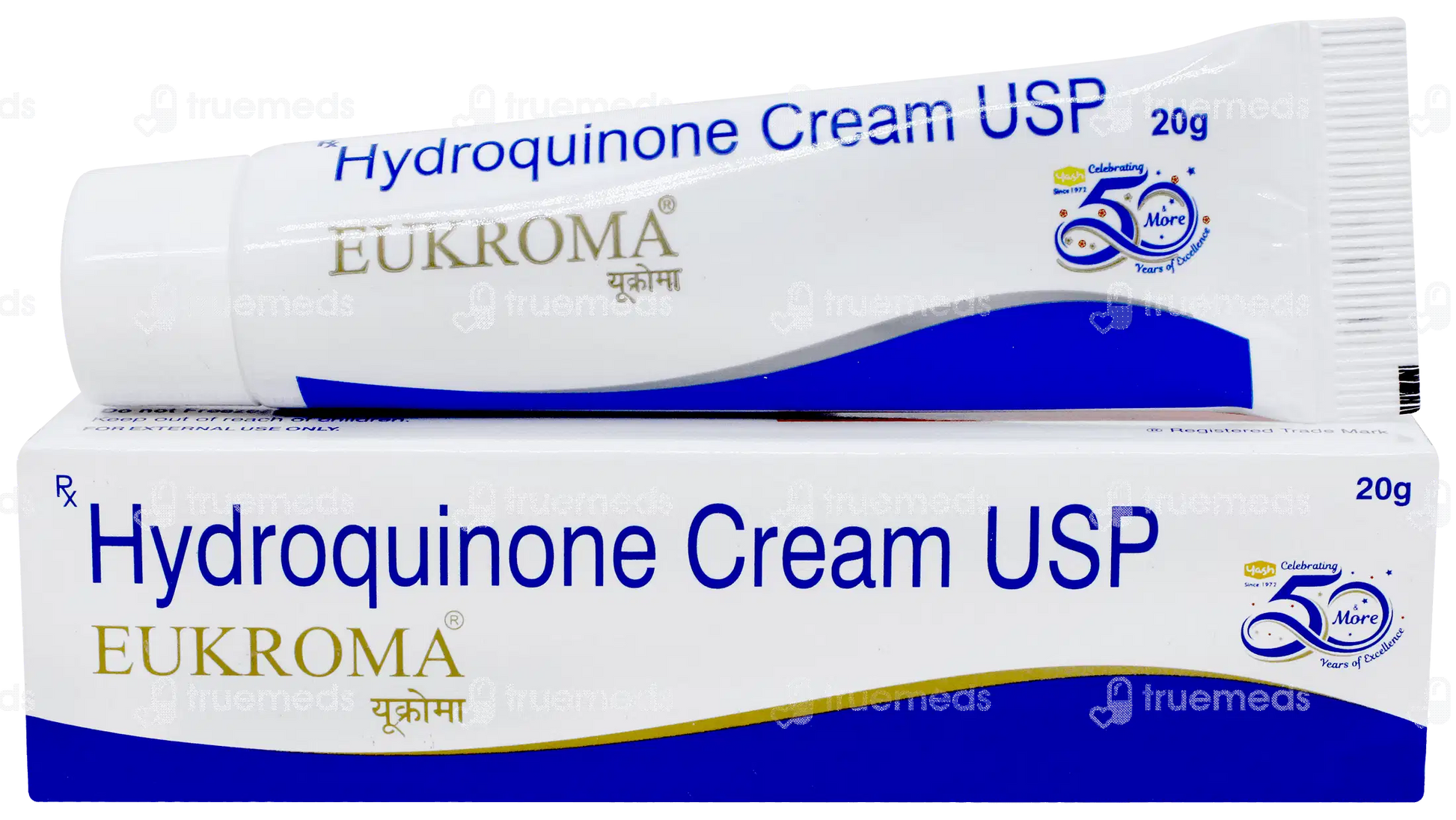 Eukroma Cream is used in the treatment of melasma. It is a skin-lightening medicine that lightens the darkened skin patches and spots(hyperpigmentation). It reduces the amount of skin-darkening pigment called melanin in the skin. It helps in reversible depigmentation of the skin.