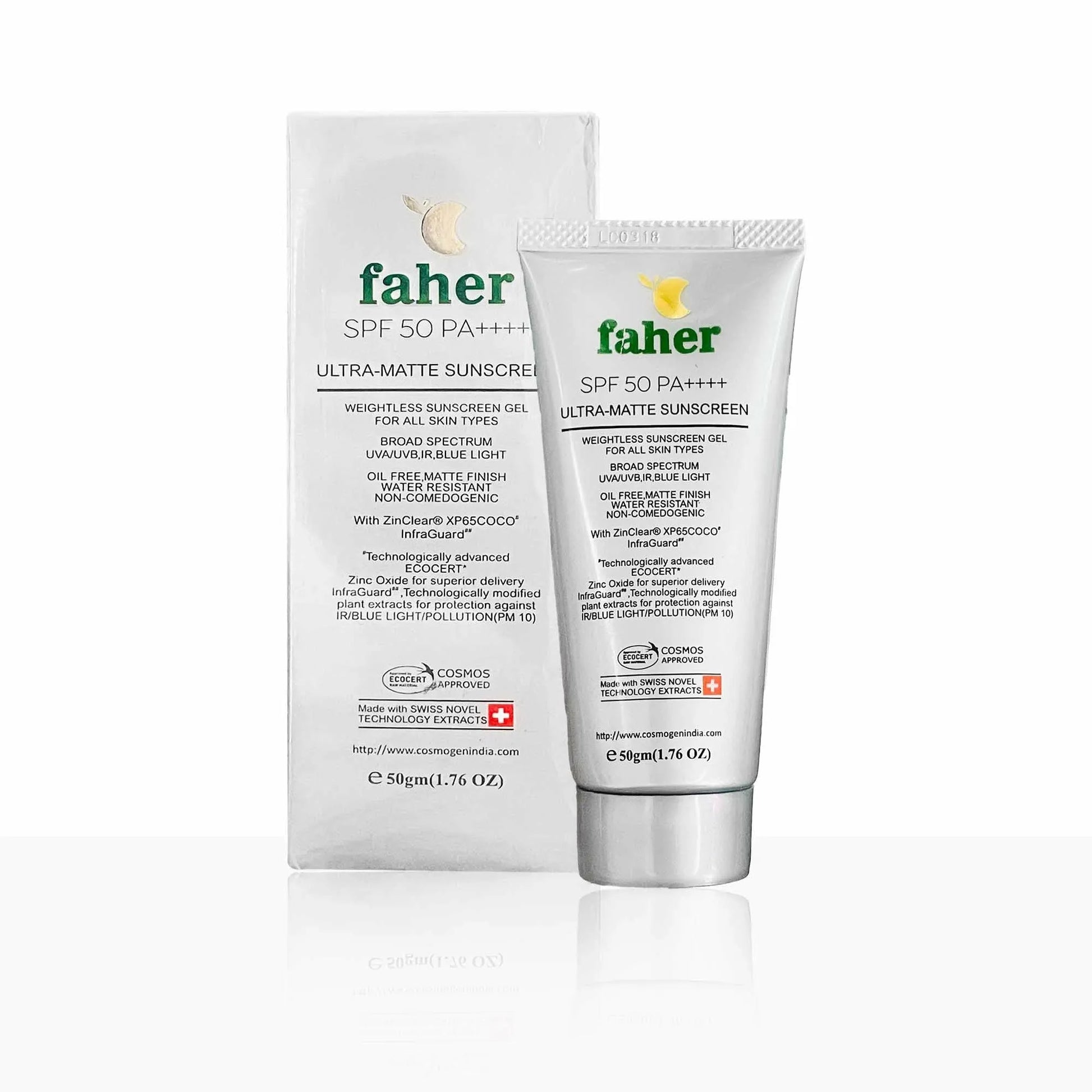Protect your skin against both UVA and UVA with the broad-spectrum sun protection of SPF 50 and PA+++ in Faher Ultra Matte Sunscreen.