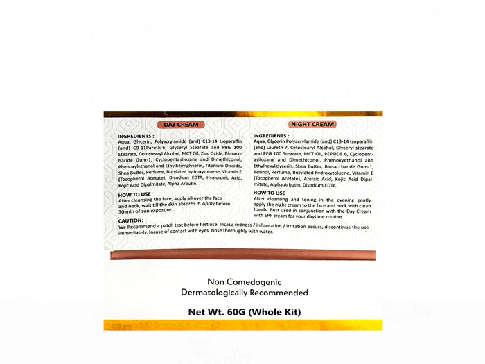Glosurg Duo Night Cream & Day Cream With SPF Kit offers a complete skincare routine designed to protect and repair your skin around the clock. The Day Cream features SPF protection, hyaluronic acid, and alpha arbutin to hydrate, brighten, and shield against UV rays, while the Night Cream is enriched with retinol, peptides, azelaic acid, and kojic acid to boost skin renewal, even tone, and reduce fine lines. Together, they ensure a radiant, smoother, and visibly rejuvenated complexion.