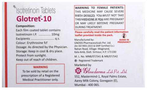 Combat acne and improve skin texture with GLOTRET 10 Tab. This powerful formula regulates sebum production and unclogs pores, leaving your skin clear, balanced, and smooth.