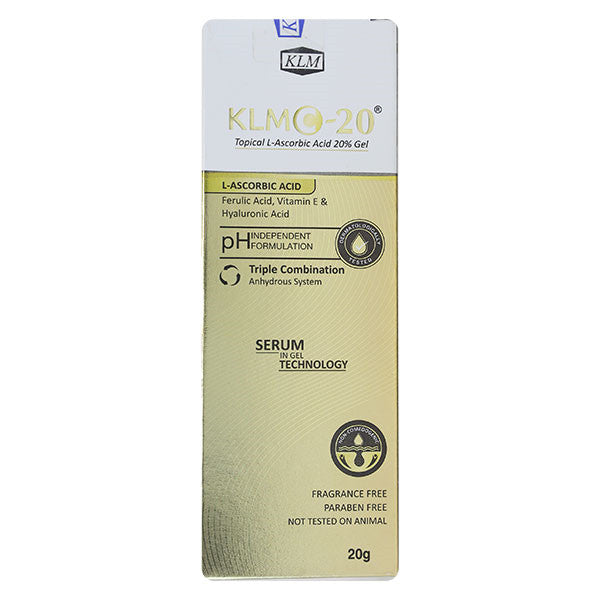 KlmC 20 Gel is a dermatologically formulated gel enriched with Vitamin C (L-Ascorbic Acid), Ferulic Acid, and Sodium Hyaluronate to promote skin health, brighten complexion, and protect against environmental damage. Its unique blend of antioxidants and moisturizing agents helps improve skin texture and elasticity.