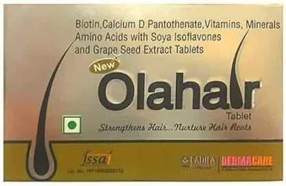 New Olahair Plus Tablet is a dietary supplement formulated to promote hair health and vitality. Enriched with a potent blend of essential nutrients including methylsulfonylmethane, L-lysine hydrochloride, N-acetyl L-cysteine, inositol, iron, niacin, zinc, pantothenic acid, manganese, copper, biotin, and selenium, this formula targets the root causes of hair issues to support strong, lustrous hair growth. Olahair Plus nourishes hair follicles from within, helping to combat deficiencies and enhance overall hair health.