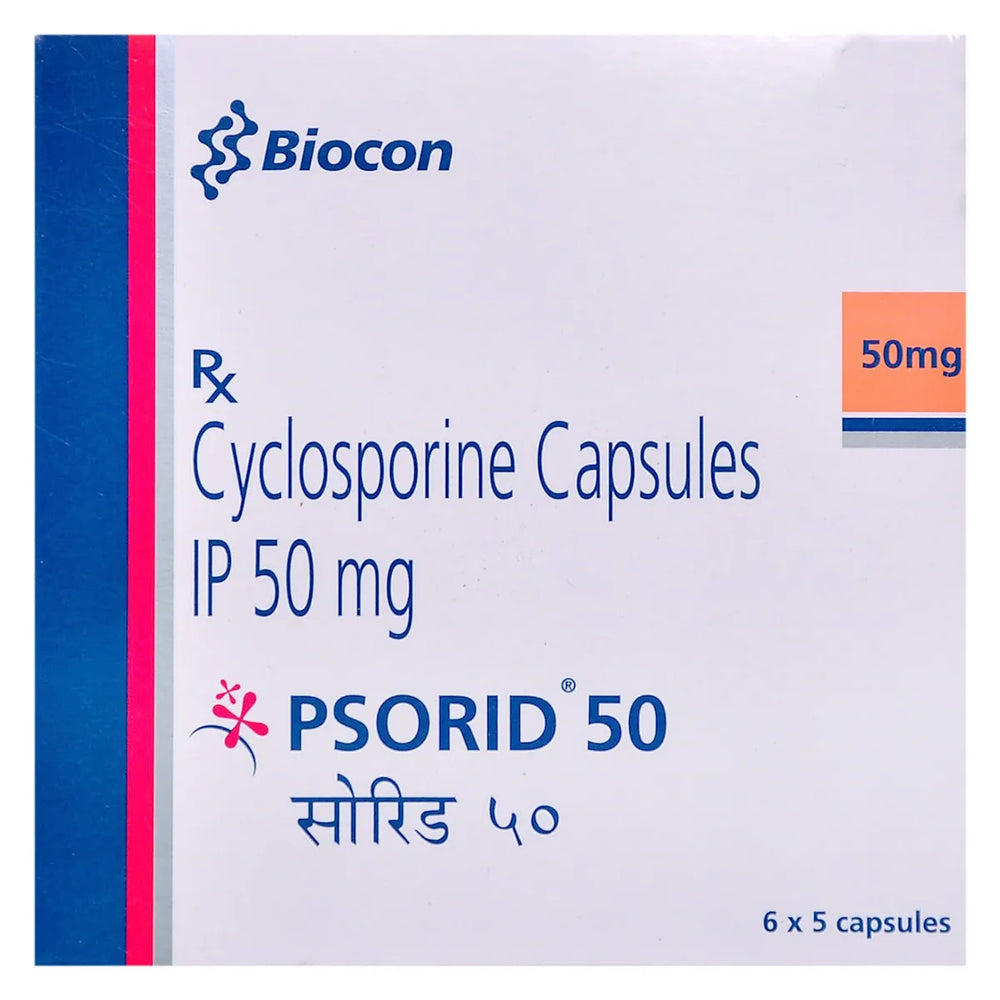 Psorid 50 Capsule is used to prevent the body from rejecting a new organ after a liver, kidney, heart transplant, or bone marrow transplantation. It weakens the immune system so that your body does not attack the new organ. It is also used to treat nephrotic syndrome, severe rheumatoid arthritis, and psoriasis.