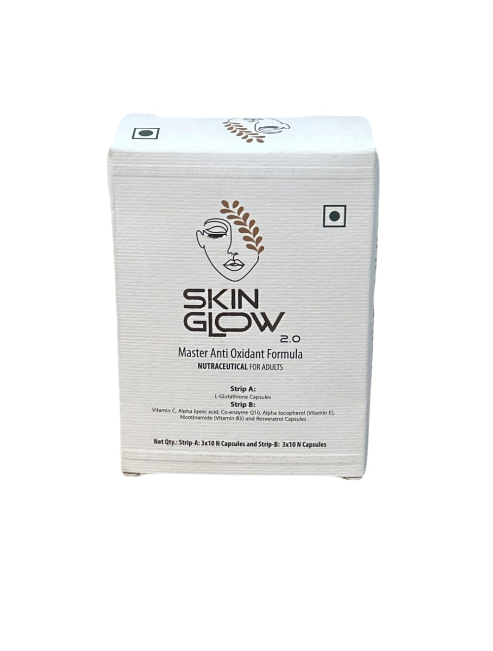 Skin Glow 2.O Capsule is a distinctive combination of a powerful antioxidant that operates on a small scale to combat the effects of aging and maintain a flawless, radiant, and nourished complexion.