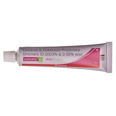 Sorvate C Ointment is a prescription medicine having a combination of medicines that are used to treat psoriasis. It decreases the overproduction of skin cells. It helps to provide relief from redness, itching and swelling.