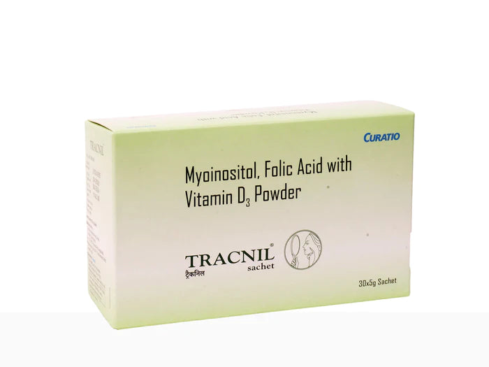 Tracnil Sachet is an ideal supplement for women suffering from Poly Cystic Ovarian Syndrome(PCOS). PCOS is generally due to hormonal imbalance and insulin resistance. Vitamin D3 has an efficient role in improving the insulin resistance. Vitamin D3 has an efficient role in improving the insulin resistance whereas, folic acid and Myo-inositol corrects the hormonal imbalance. It also improves the overall ovarian function and ovulation.