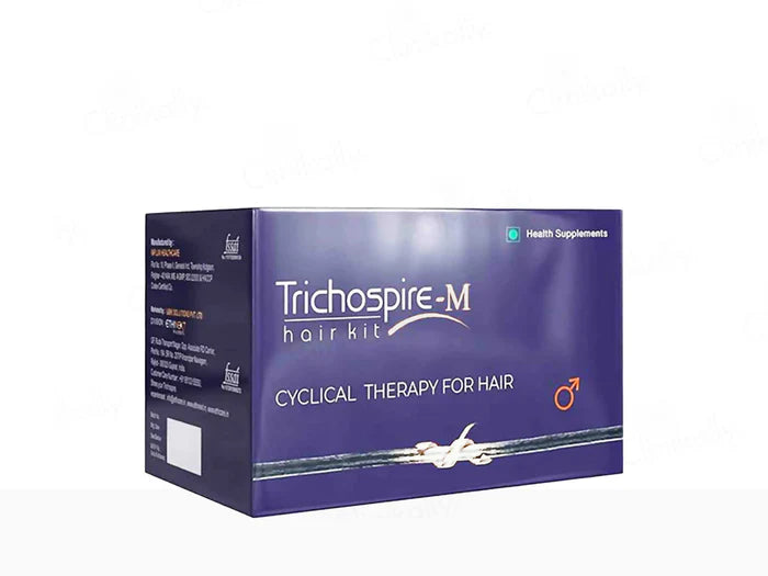 Trichospire-M Hair Kit is a comprehensive hair health supplement that offers cyclical therapy to support and maintain vibrant hair. This unique formula strengthens hair roots, nourishes the scalp, and fosters healthy hair growth. With a blend of essential ingredients, it's your ally in achieving and maintaining lustrous locks. Incorporate it into your daily routine to promote robust and healthy hair.