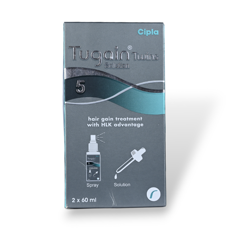 Tugain 5% Solution is a medicine used to treat common hereditary hair loss. It can prevent further hair loss and help hair to re-grow. It works by increasing blood flow to the hair follicles on your scalp, which prevents hair cell death and also enhances new hair growth