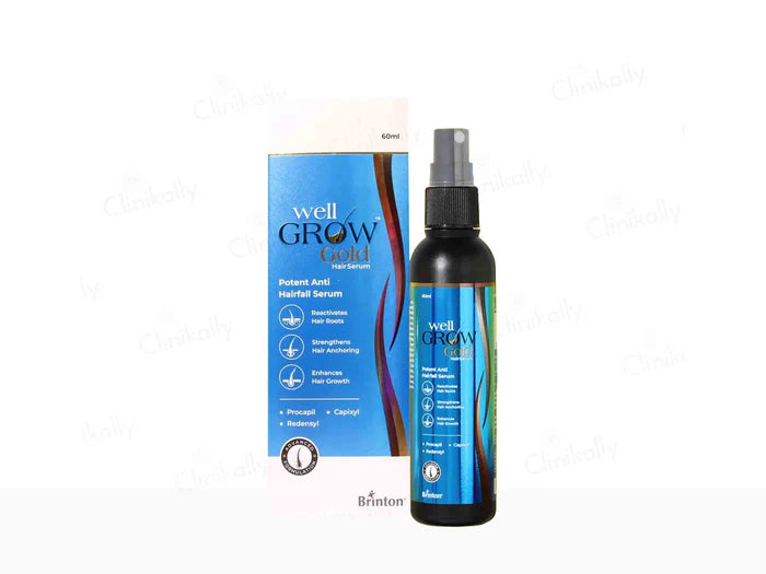 Experience the transformative power of Well Grow Gold Anti-Hairfall Hair Serum. Crafted to combat hair fall, this serum nourishes and strengthens hair follicles, promoting healthier and thicker strands. Enriched with potent ingredients, it revitalizes the scalp and encourages hair growth while reducing breakage. Restore your hair's vitality and shine with this clinically proven solution for hair fall.