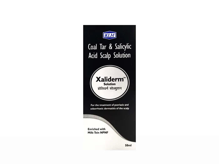 Xaliderm Scalp Solution is a therapeutic treatment designed to manage scalp conditions like psoriasis and seborrheic dermatitis. Enriched with Coal Tar and Salicylic Acid, it works by reducing inflammation, controlling excess oil production, and promoting the shedding of dead skin cells. This solution also contains Benzalkonium Chloride as a preservative, ensuring its stability and effectiveness. Regular use, as directed by a physician, can lead to healthier scalp conditions and improved hair growth.