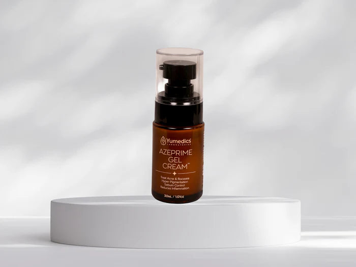 Yumedics Azeprime Gel Cream is a multi-active corrective treatment that combines dermatological ingredients for comprehensive skin renewal. This lightweight gel-cream features Azelaic Acid (10%) to reduce inflammation and hyperpigmentation, N-Butyl Resorcinol for targeted spot correction, and Glycolic Acid for gentle exfoliation. Radianskin (a patented brightening complex) and Ferulic Acid provide antioxidant protection against environmental damage. The oil-free formula absorbs quickly without residue, making it ideal for acne-prone and sensitive skin types seeking clarity and even tone.
